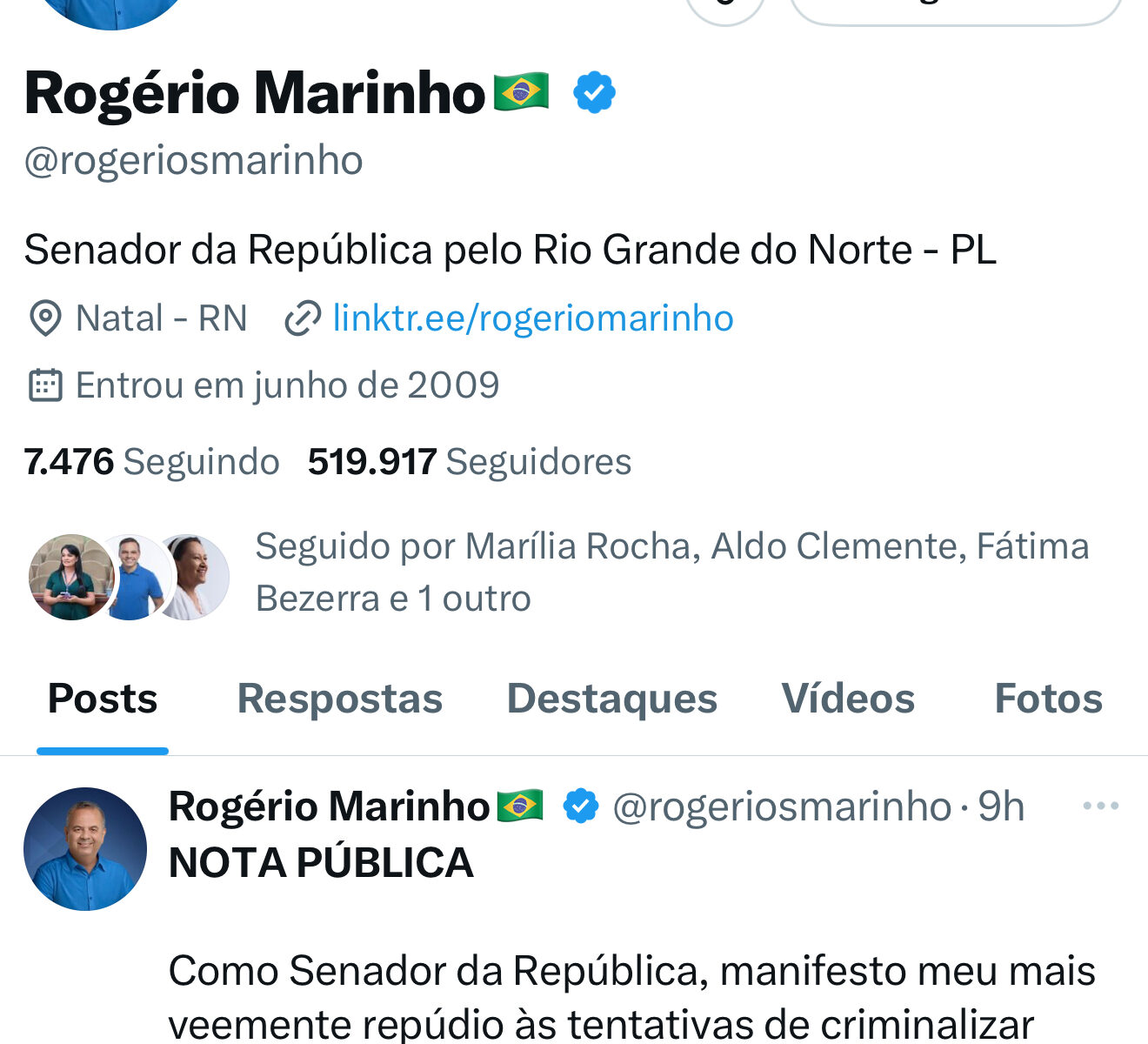 O senador potiguar Rogério Marinho (PL-RN) divulgou nesta quarta-feira (20) uma nota pública em que manifesta seu mais veemente repúdio às tentativas de criminalizar manifestações pacíficas da sociedade brasileira e de perseguir lideranças políticas e religiosas. O posicionamento do parlamentar ocorre em meio às recentes ações judiciais que atingiram o ex-presidente Jair Bolsonaro, o deputado Eduardo Bolsonaro e o pastor Silas Malafaia, alvos de medidas que, segundo ele, não se coadunam com o devido processo legal.